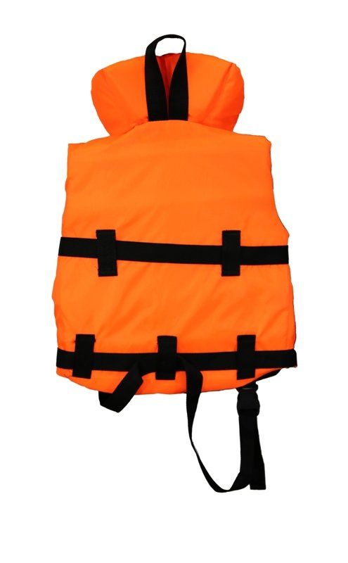 Для поддержания головы над водой у жилета имеется удобный подголовник (воротник) с сигнальными полосами, которые обеспечивают видимость местонахождения человека в темное время суток. Жилет имеет два больших кармана с клапанами и нагрудный кармашек, в котором находится сигнальный свисток. Для надежного удержания человека при падении в воду у жилета предусмотрены регулируемые стропы на поясе и груди, а также паховые ремни. Надежная тракторная молния и поясные ремни с застежками надежно фиксируют спасательный жилет на Вашем теле.