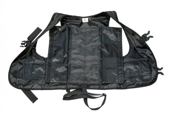 Жилет из прочной ткани с плотными швами, вмещает в себя до 8 килограммовых грузовых пластин.