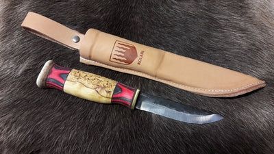 Материал рукояти - карельская берёза, олений рог